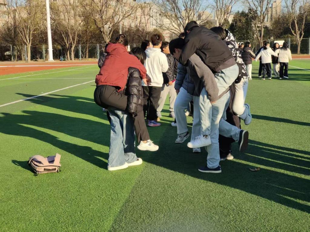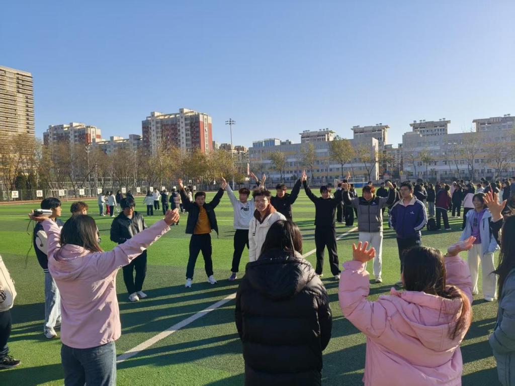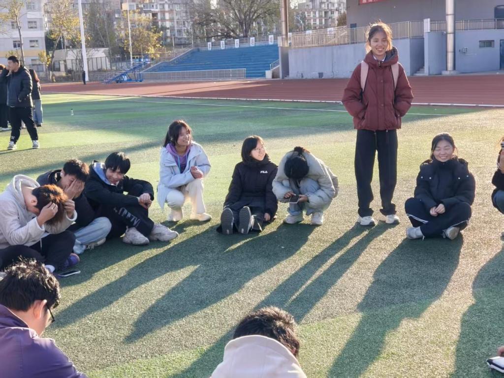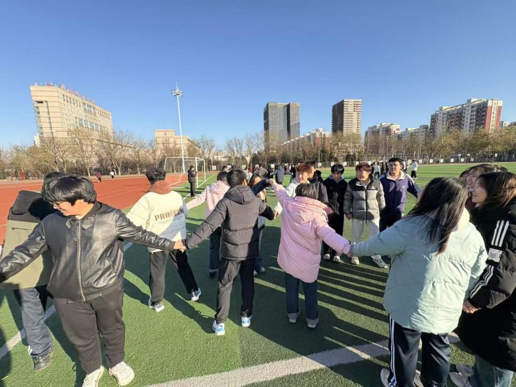 2025年11月25日下午,教育学院2023级应用心理学专业学生在唐山师范学院大学道校区南院操场开展了“青春飞扬,携手共进”团辅活动。旨在提升2025级物理学院150名新生的团队协作能力与班级凝聚力。