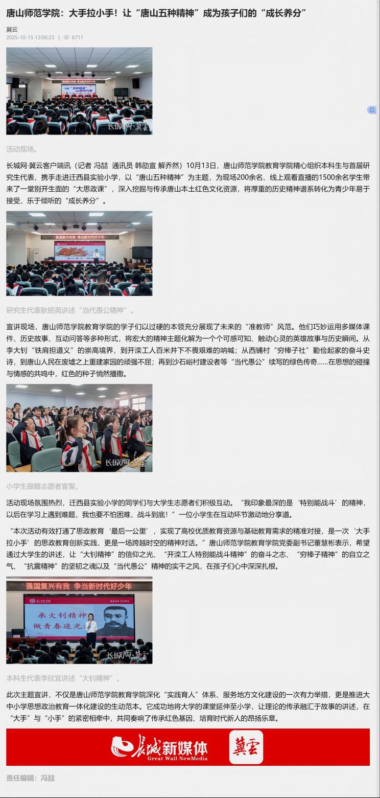 《冀云》—唐山师范学院:大手拉小手!让“唐山五种精神”成为孩子们的“成长养分”