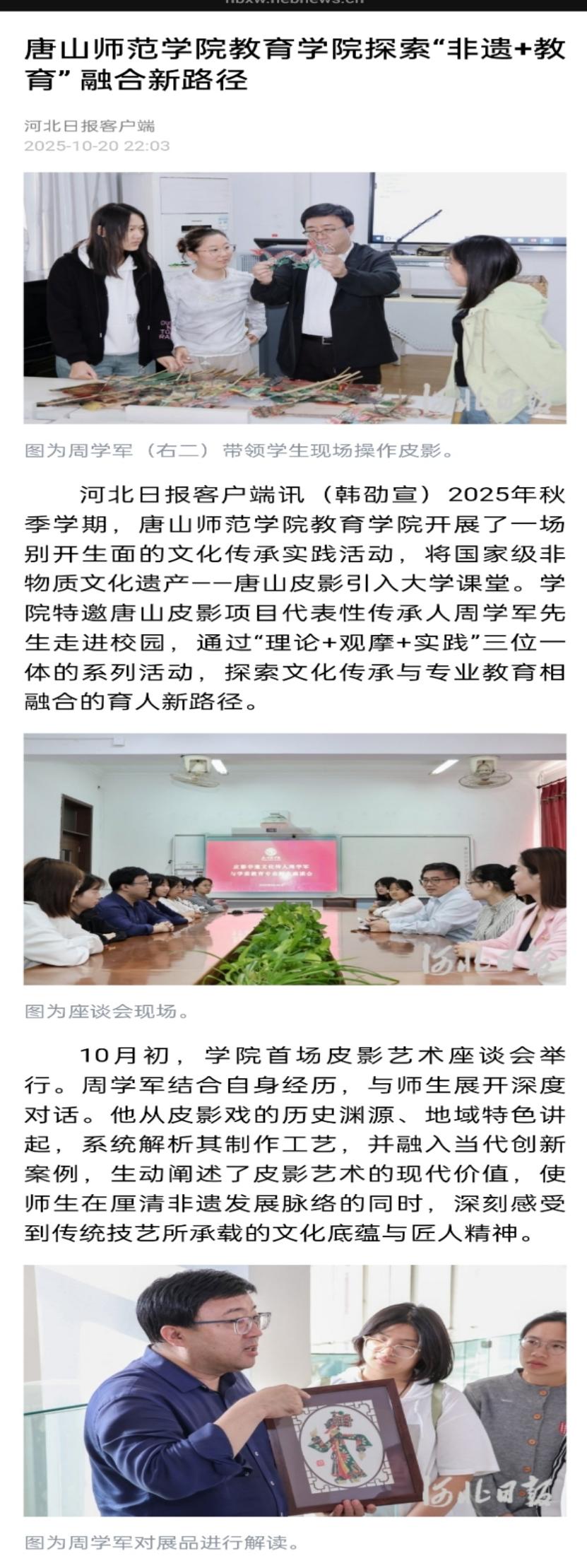 《河北日报》—唐山师范学院教育学院探索“非遗+教育” 融合新路径