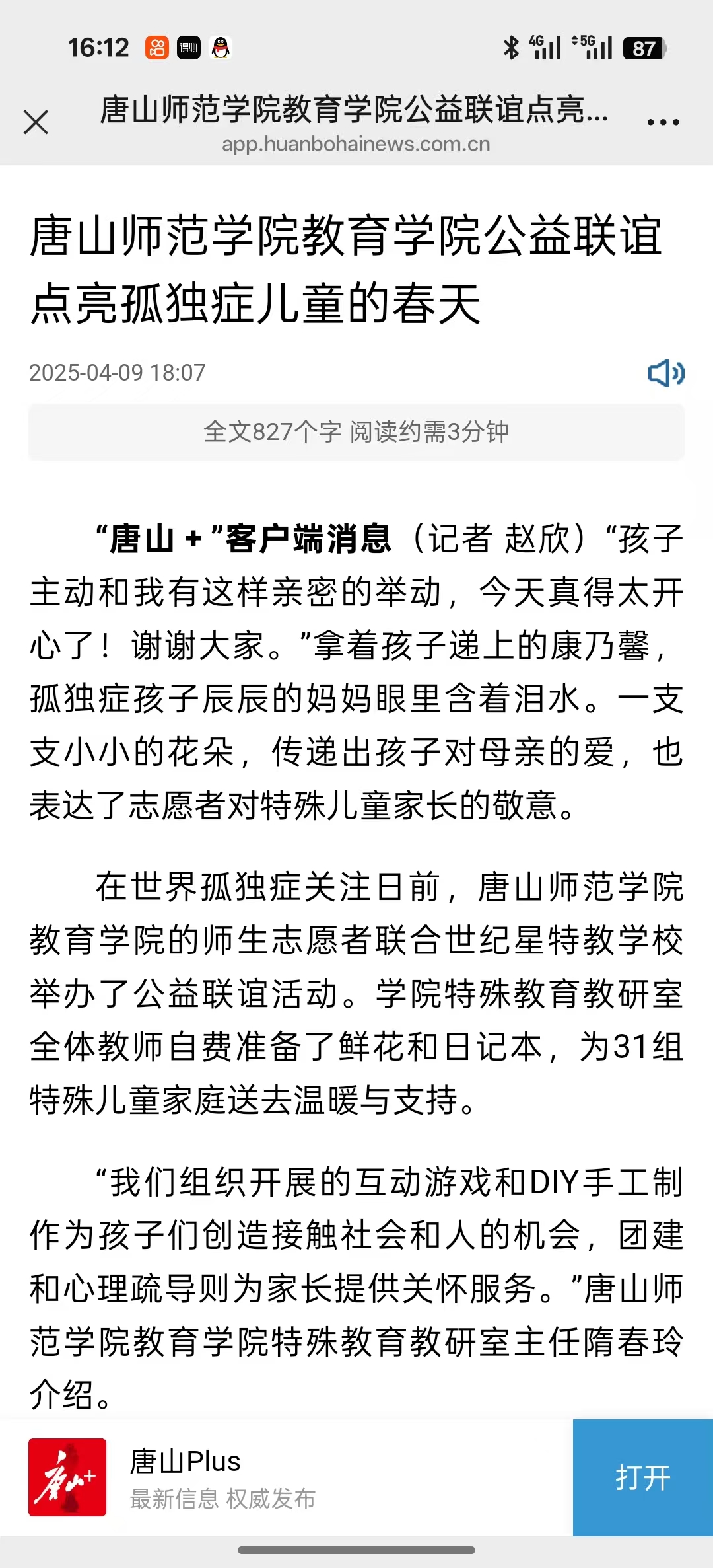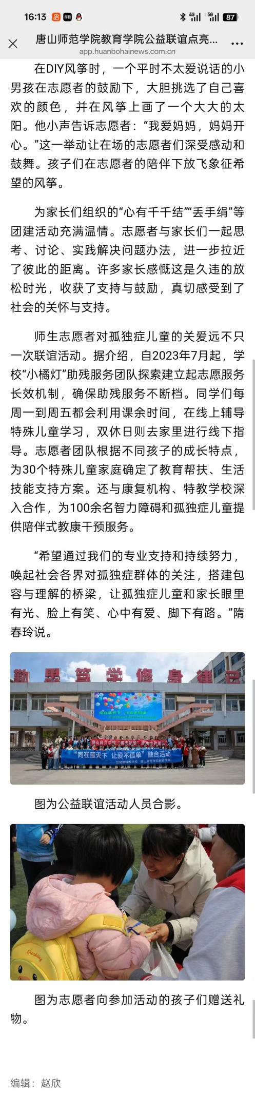 《唐山plus》-唐山师范学院教育学院公益联谊点亮孤独症儿童的春天