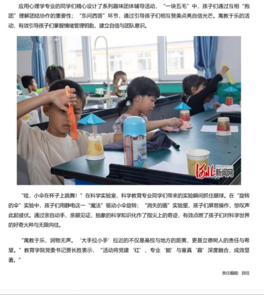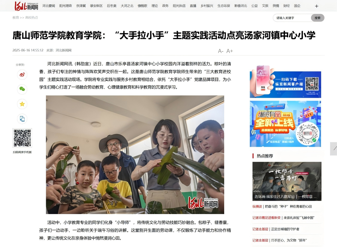 《河北新闻网》—唐山师范学院教育学院:“大手拉小手”主题实践活动点亮汤家河镇中心小学