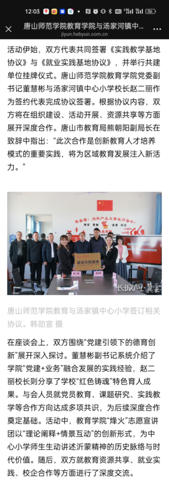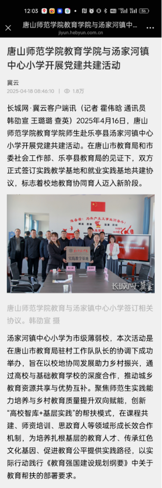 《冀云》——唐山师范学院教育学院与汤家河镇中心小学开展党建共建活动