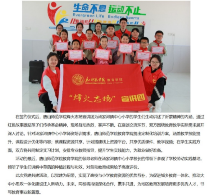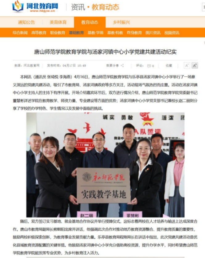 《河北教育网》——唐山师范学院教育学院与汤家河镇中心小学党建共建活动纪实