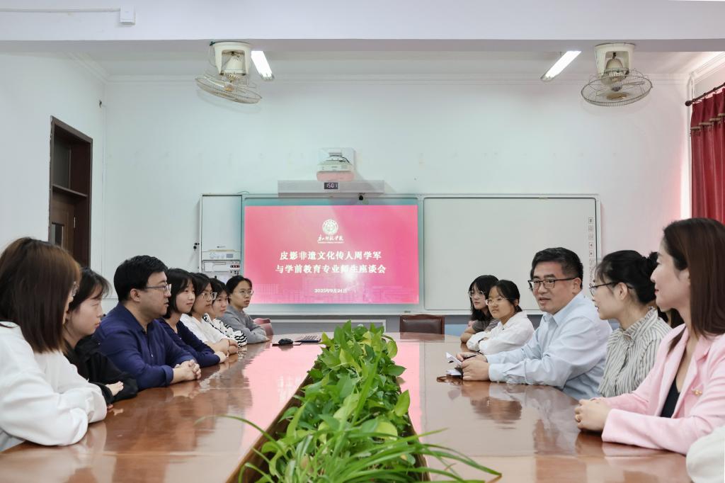 当跨越千年的皮影照进现代大学的课堂,一场关乎中华文明薪火相传的生动实践正在悄然进行。9月24日下午,唐山师范学院教育学院以一场别开生面的座谈会,为推动非物质文化遗产的活态传承与创新型人才培养提供了富有启示性的范例。活动特邀国家级非遗传承人周学军走进校园,与未来将肩负幼儿启蒙重任的学前教育专业师生进行深度对话,旨在从教育源头筑牢文化自信的根基。