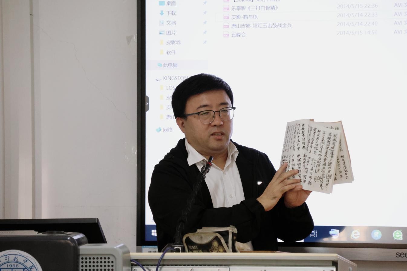 为深入践行“传承优秀传统文化,坚定文化自信”的时代使命,近日,教育学院“知行大讲堂”系列活动特邀唐山皮影非物质文化遗产代表性传承人周学军先生,于特教楼603教室开展题为《光影匠心,非遗绝唱——唐山皮影的千年传承》的主题讲座,带领师生共同走进皮影艺术的光影世界。